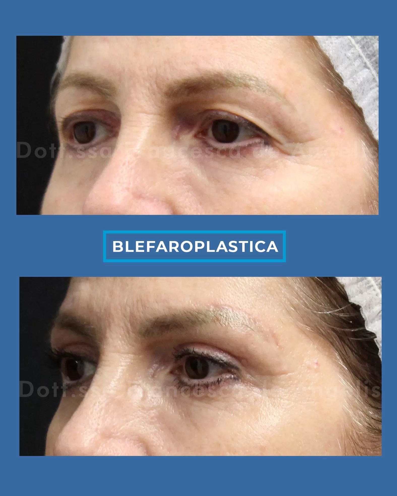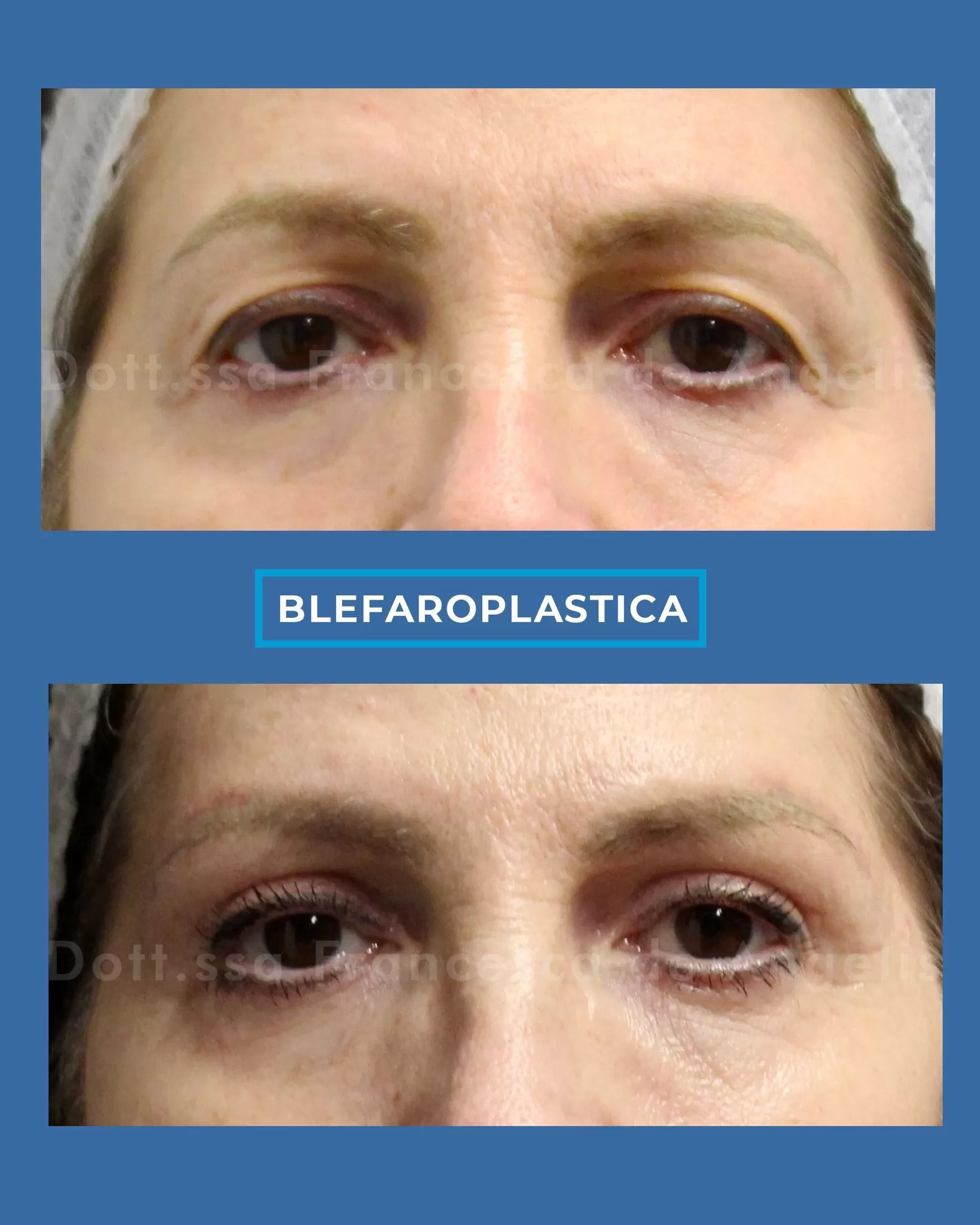 La Blefaroplastica o chirurgia dello sguardo, è l’intervento di chirurgia estetica che tende ad eliminare in maniera permanente la pelle in eccesso e le borse adipose a livello della palpebra superiore ed inferiore. Inoltre questa procedura ti offre un aspetto più giovane e riposato, uno sguardo più aperto e un netto miglioramento del campo visivo! Questo intervento può essere combinato con il lifting diretto do indiretto del sopracciglio.