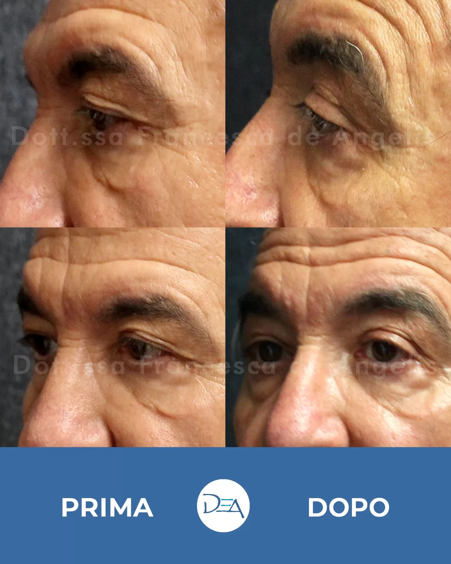 A livello palpebrale inferiore, invece, si può eliminare solo la cute in eccesso, la cute e le borse palpebrali insieme e si può combinare con un trattamento di laser resurfacing co2 per trattare anche le rughe del contorno occhi e la qualità talvolta scadente della pelle in questa zona che con l’età forma come delle piccole “pieghette”.