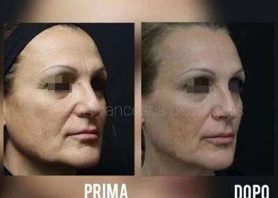 - SEDUTA FINALE: RESHAPING DEL VOLTO con filler ad alta capacità elastica per garantire anche il ripristino dello spessore e della proiezione delle ossa del volto, che vengono perse con il processo dell’invecchiamento (es. La mandibola si assottiglia e si accorcia per questo spesso compare la ruga della marionetta ed il suo fastidioso “bargiglio”.