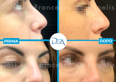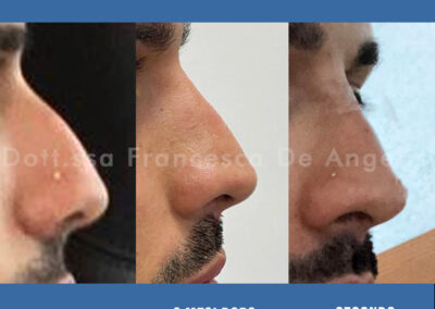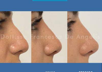 Questo trattamento ha il vantaggio di far evitare al paziente l’intervento chirurgico, oppure può essere utilizzato per simulare, quando possibile, il risultato che si otterrà con l’intervento. Infine, può essere utilizzato per correggere difetti successivi ad interventi eseguiti male od a complicanze di una rinoplastica.