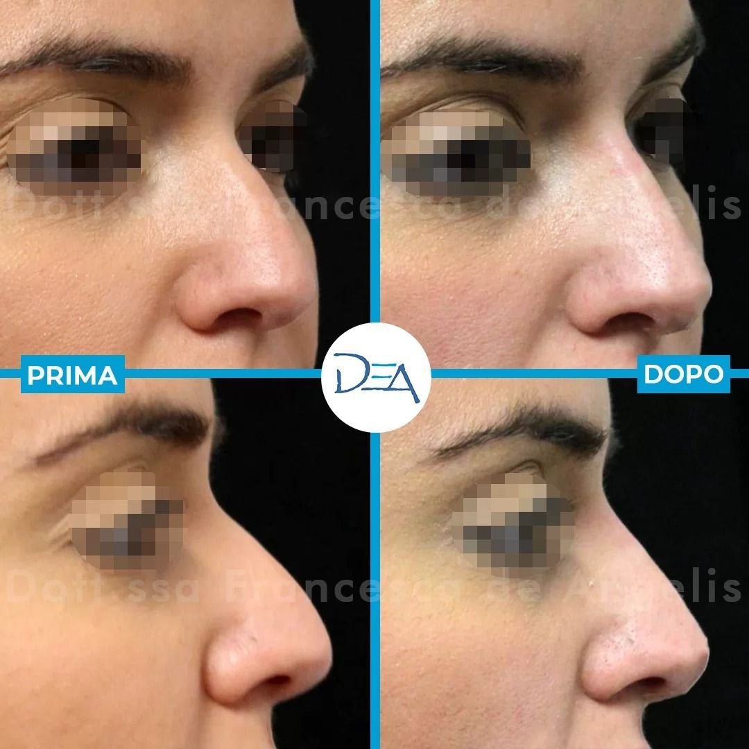 Questo trattamento ha il vantaggio di far evitare al paziente l’intervento chirurgico, oppure può essere utilizzato per simulare, quando possibile, il risultato che si otterrà con l’intervento. Infine, può essere utilizzato per correggere difetti successivi ad interventi eseguiti male od a complicanze di una rinoplastica.